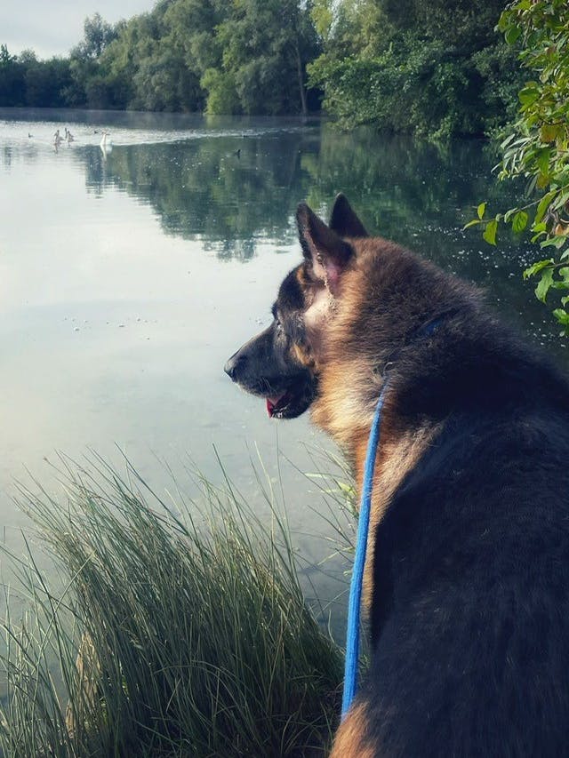 Benji is as close to perfect as you can get and someone will be very lucky to have him. He has been with me almost two months and has not stepped a paw wrong in that time. He is not your typical GSD - I have never heard him bark, and he does not have any guarding or protective characteristics . He is happy chilling out and just wants an easy life. He is left on his own whilst I go to work. I do go home lunchtimes to walk him but he is happy to be left on his own for this time. He does not bark or scratch the doors whilst I'm gone, just mostly sleeps awaiting my return. He is very clean in the house and has no accidents at all and happy to hold it all night. He is very well behaved in the house and is happy relaxing on his bed chewing a bone or laying next to you on the couch for a cuddle. He is an affectionate soul who just likes to be with you and will often pop over for a pat on the head if you haven’t given him any attention for a while.