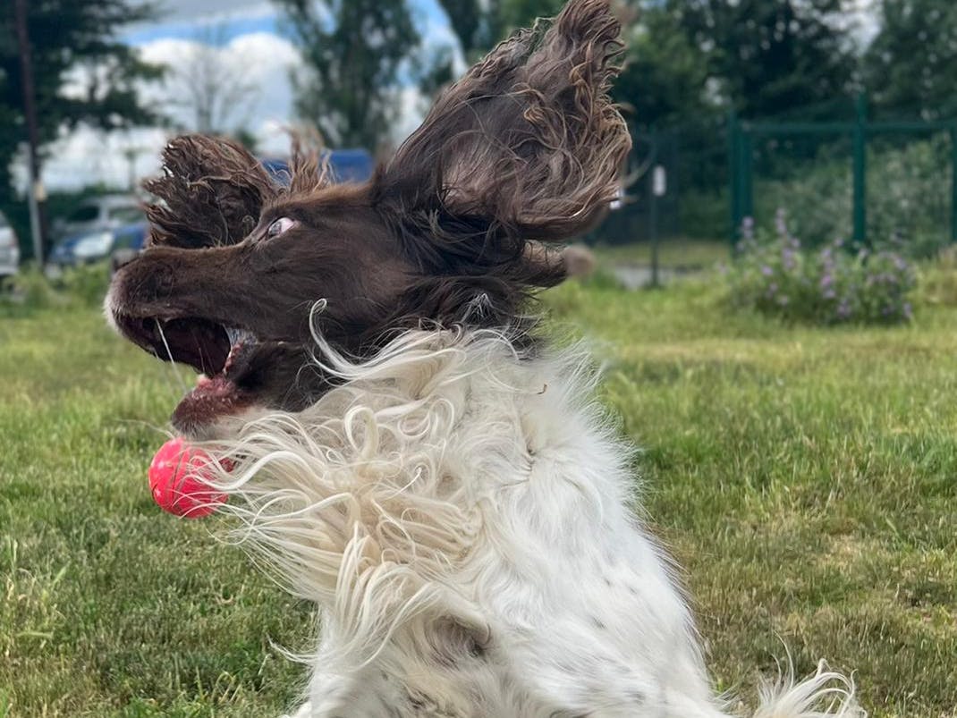 I am a sweet boy who lives to play fetch! I would happily play ball all day if I could, and will bring it back to you again and again! I can become quite over stimulated by ball play so my foster family have been working on brain games and enrichment.