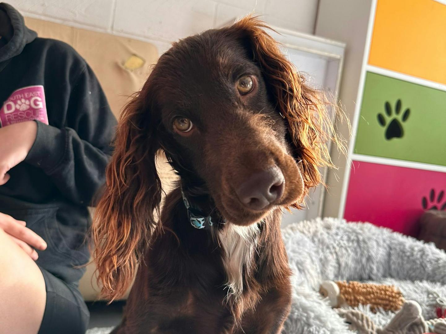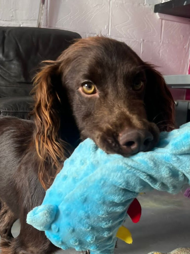 In an environment I am comfortable in, I'm a typical crazy spaniel who loves to run and play and I adore cuddles and sitting on your lap!