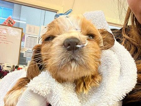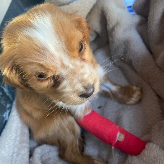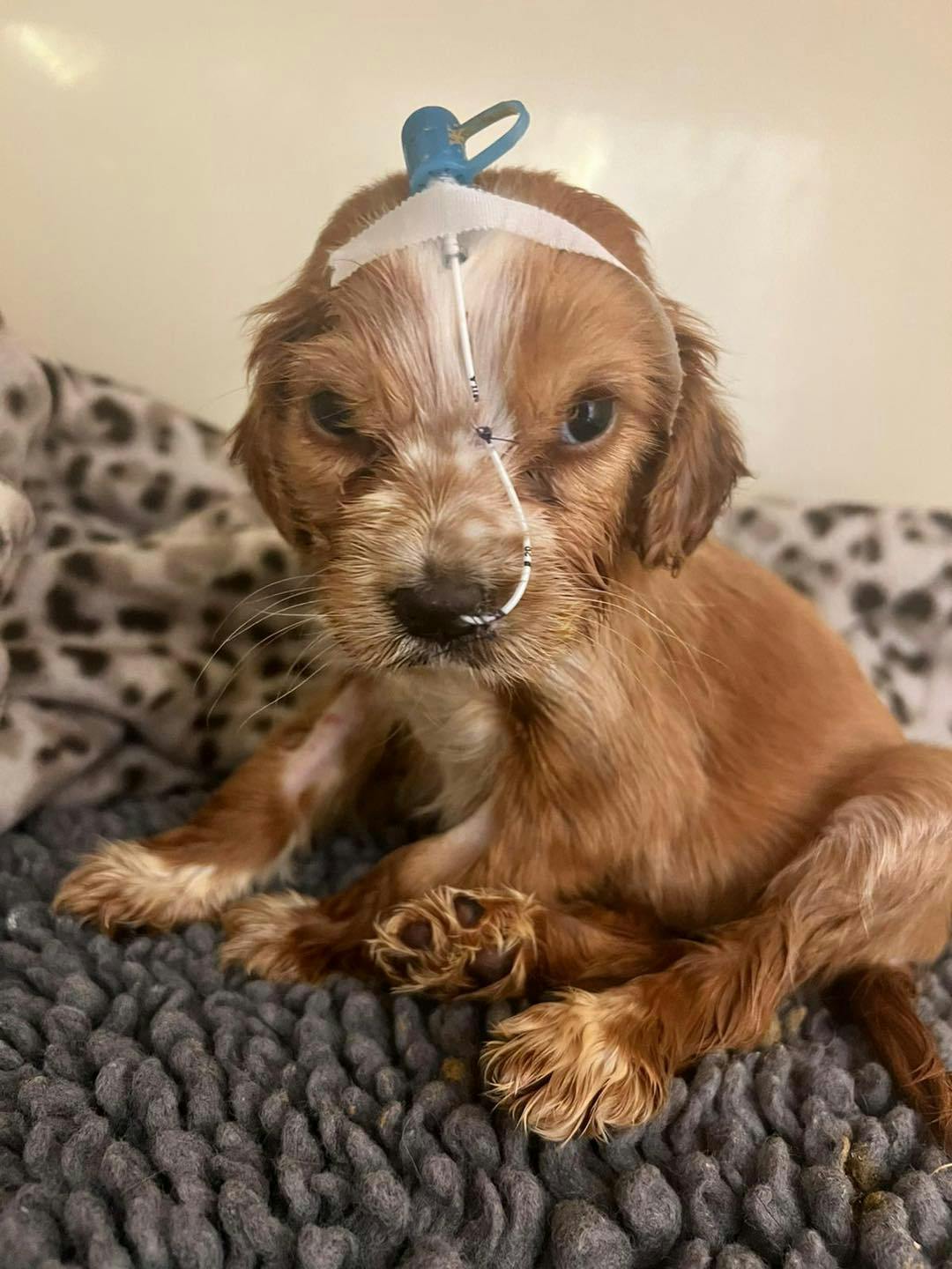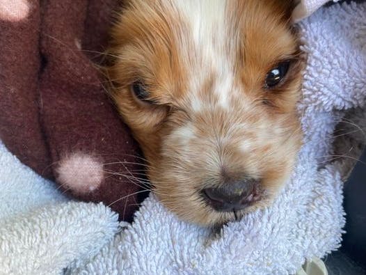 This little 1kg pup came to us as an emergency. She was taken into a vets after apparently being found under a bush in a car park.