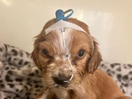 In the time she has been at the RVC, Connie has had her ups and downs and remains in intensive care. She is showing slight improvements but remains seriously ill. Shes still quite sleepy but is a little brighter overall. Shes been carried outside to enjoy some fresh air and had a little sniff of her surroundings whilst being cuddled. Her blood pressure is better and so are her glucose levels. She is not interested in food but she is having 200% of the daily calorie intake that she needs, so most likely she's just full. No signs of nausea, and no regurgitation or vomiting.