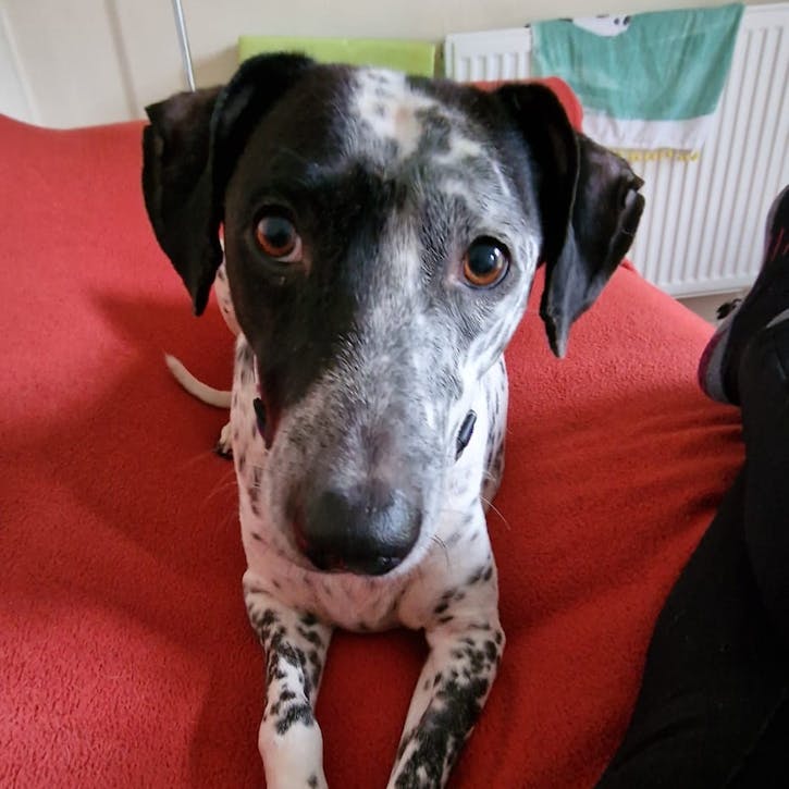 'Buzz is an absolute delight who came to my house and after a little whining and pacing initially (he is a sensitive soul and going back into a home would have unsettling for any dog) he made himself at home on the sofa and in a dog bed.