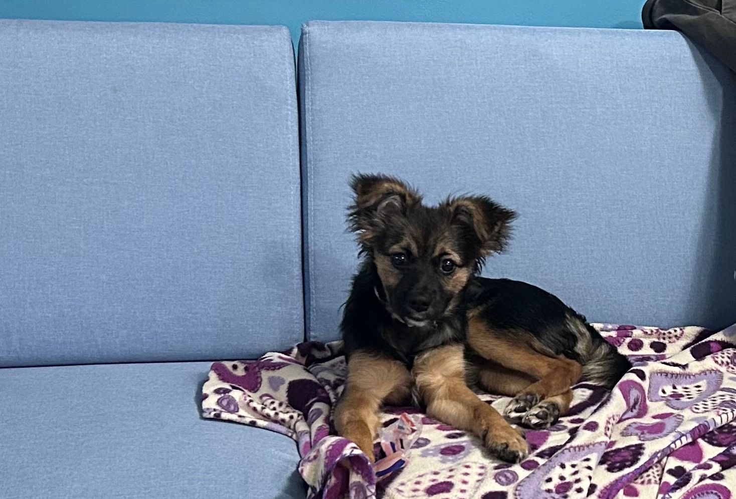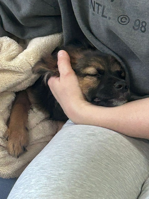 Dolly currently weighs 6kg (having gained 1kg over the past two weeks). While her breed is unknown, we don’t expect her to grow much bigger.