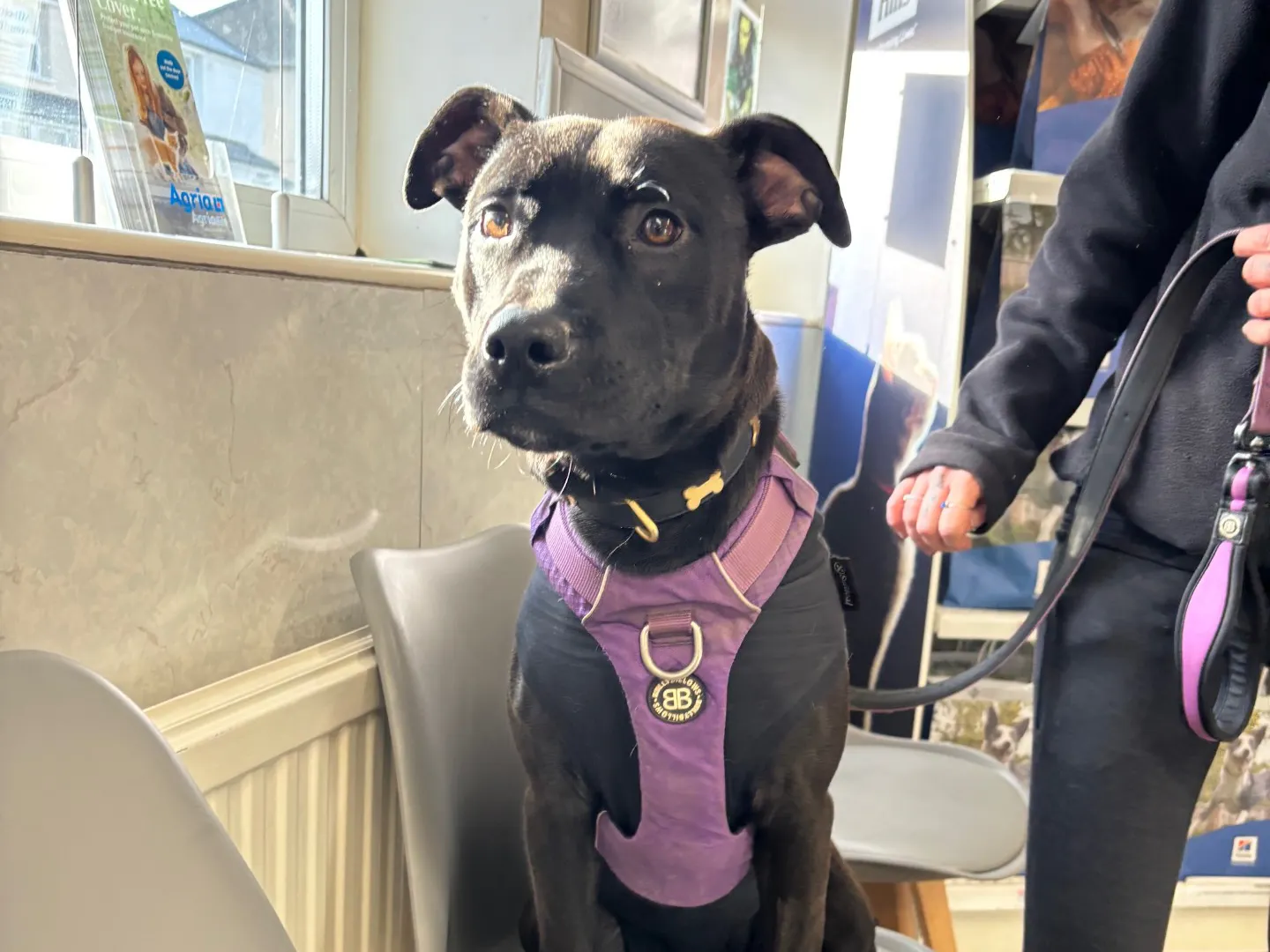 She enjoys her walks and is learning to walk nicely on the lead…she has had little training but is extremely bright, food motivated and keen to please!