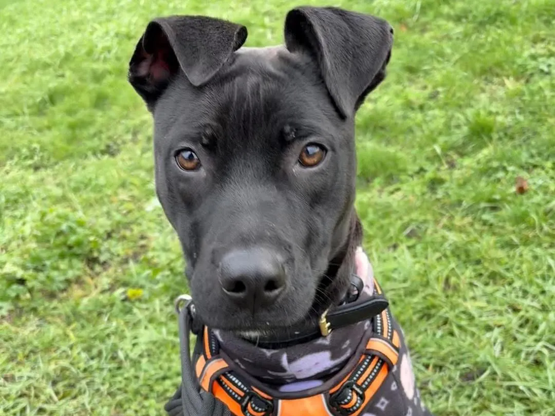 Eve is a happy bouncy puppy who loves everyone she meets!! She is energetic and is learning not to jump up to say hi to everyone who stops to say hello to her!