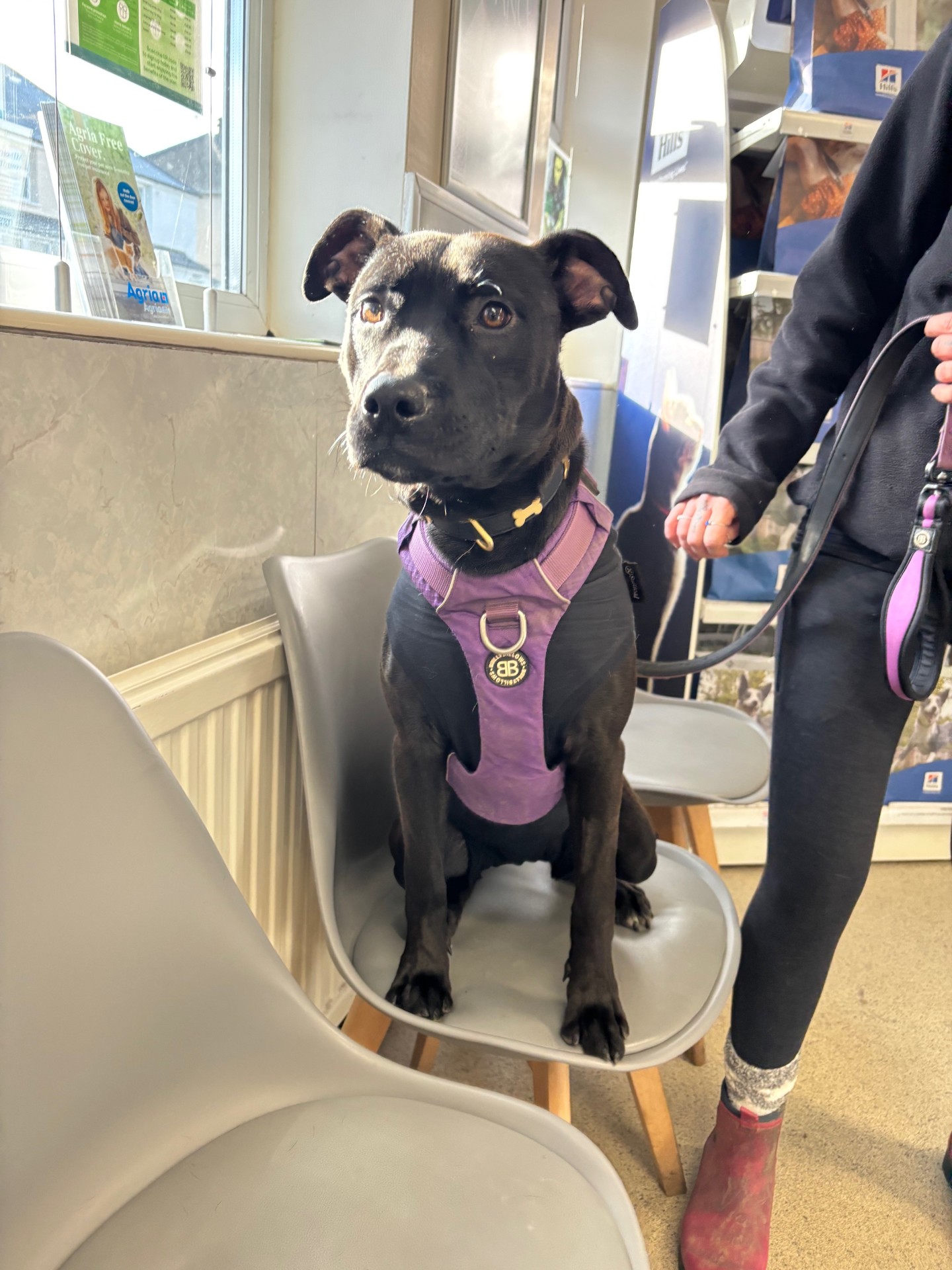 Eve is a happy bouncy puppy who loves everyone she meets!! She is energetic and is learning not to jump up to say hi to everyone who stops to say hello to her!