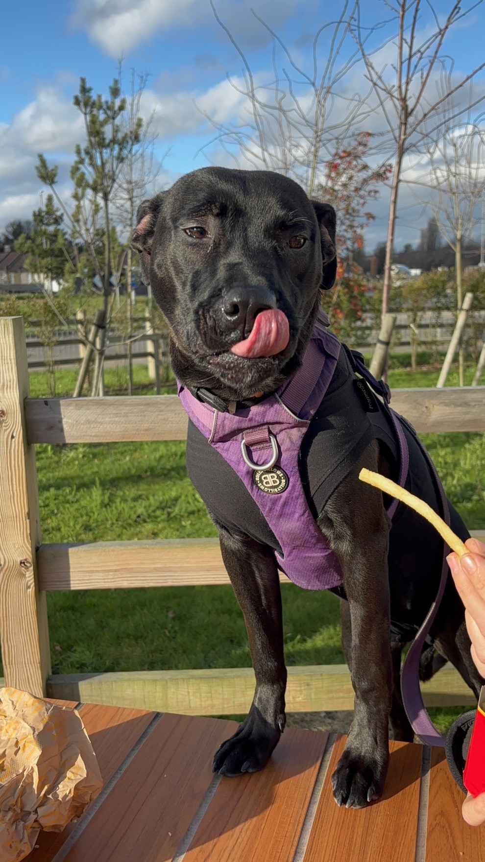 She enjoys her walks and is learning to walk nicely on the lead…she has had little training but is extremely bright, food motivated and keen to please!