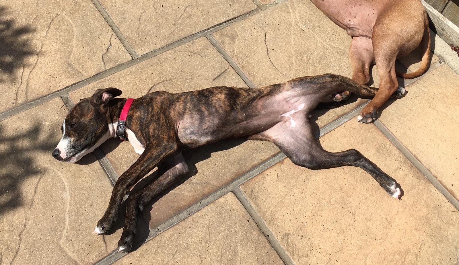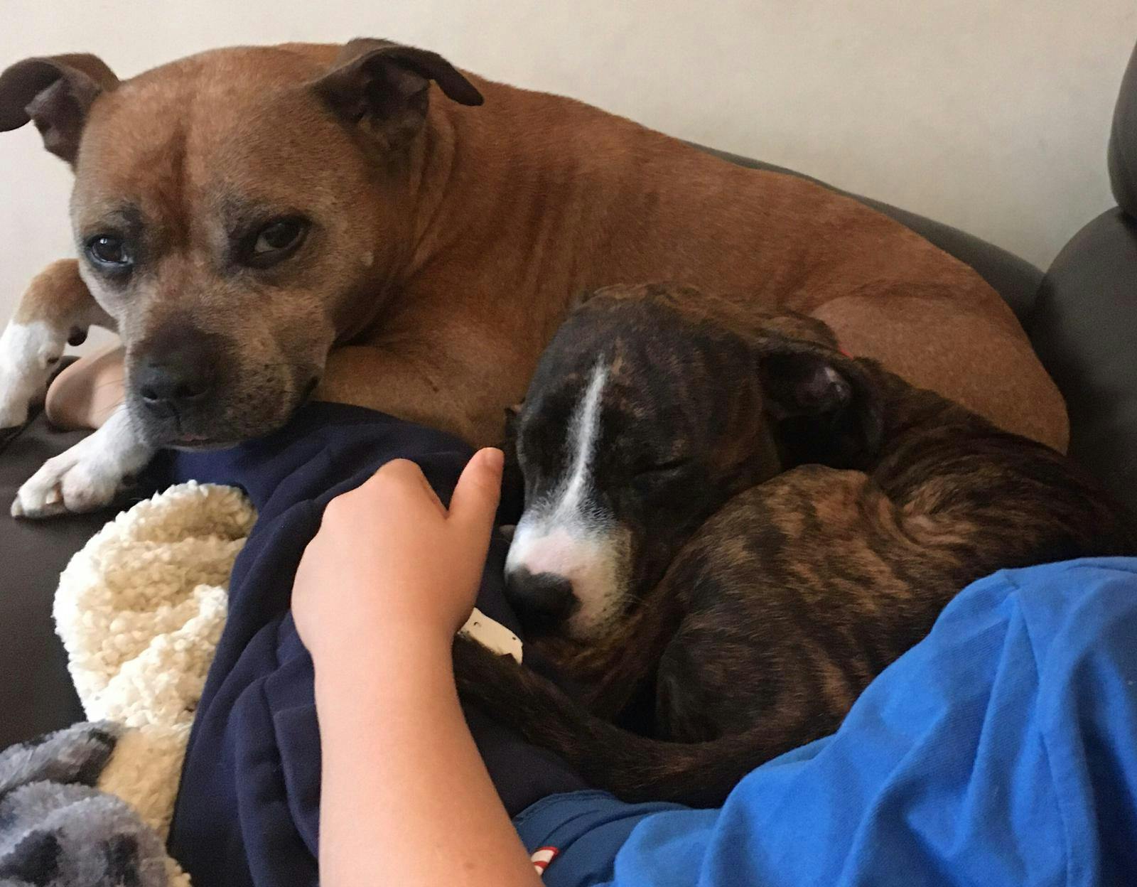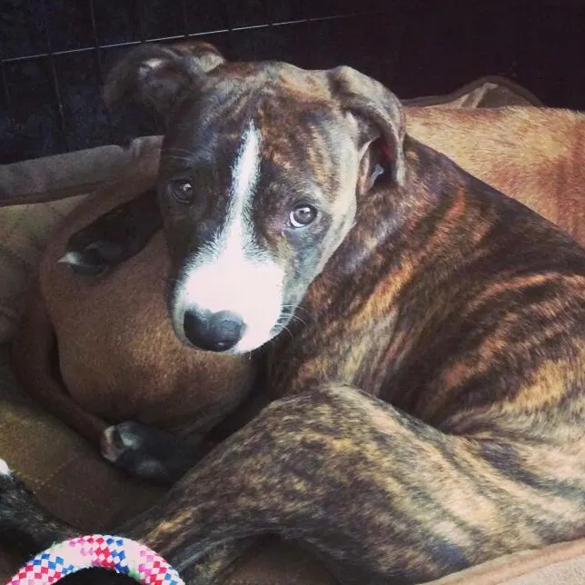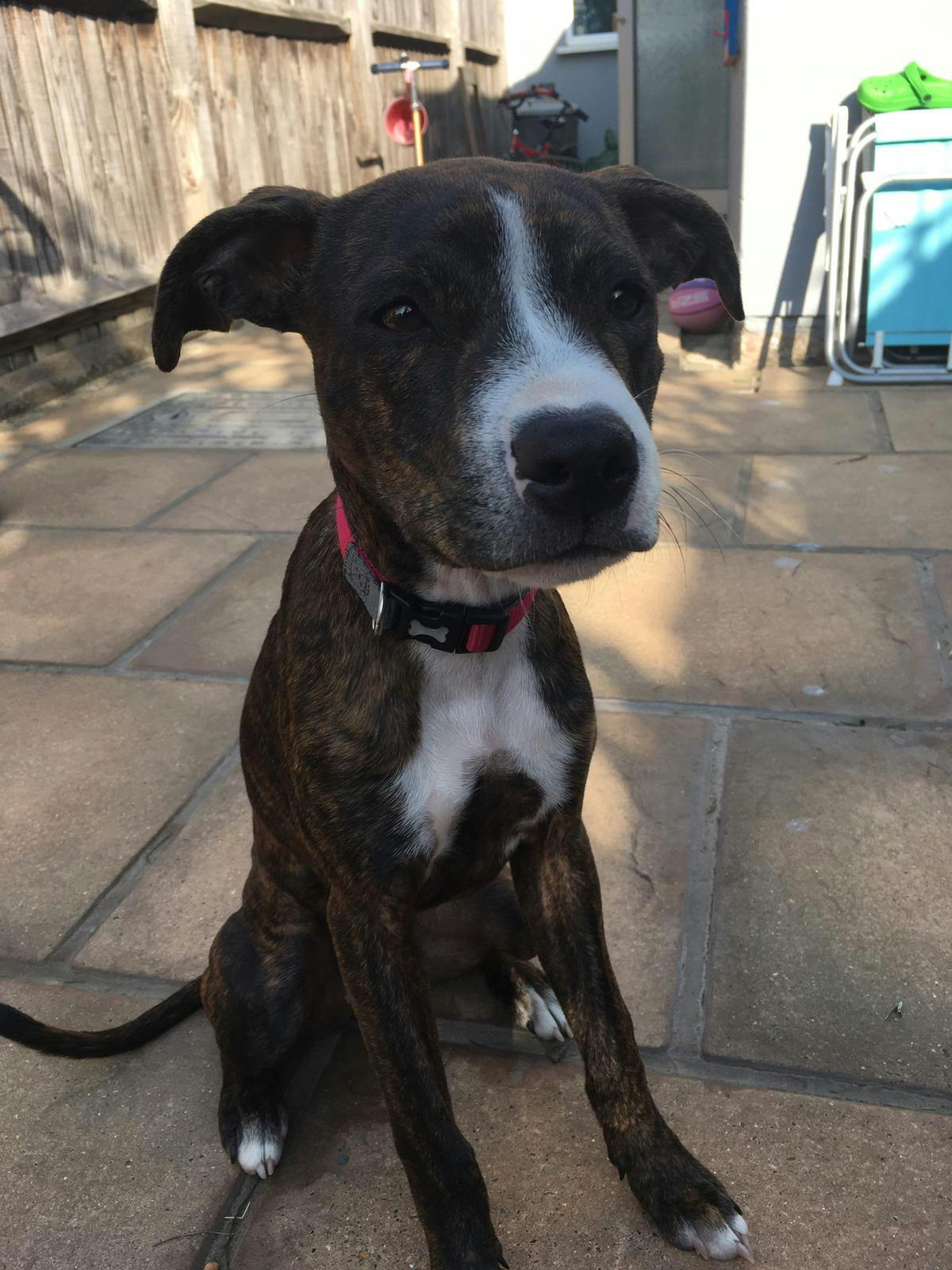 I am a 7 month old Staff pup (with a bit of Lurcher thrown in for flavour!). I am vaccinated and microchipped but I am too young to spay yet. Therefore, my new family will be required to spay me under a contract from the rescue.