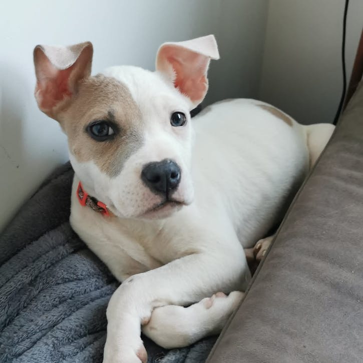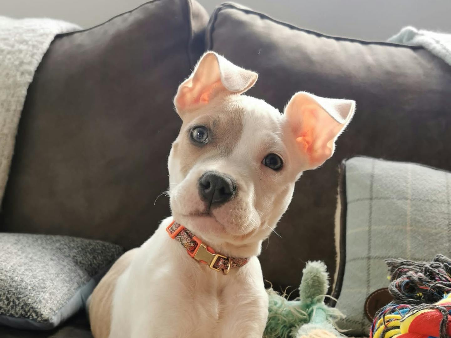 My name is Star and I am a 4 month old American Bulldog cross puppy. I came into rescue aged 10 weeks old, seriously ill due accidental poisoning in my breeders home. I arrived at SEDR close to death, but thanks to an amazing vet team, I have made a full recovery and am now in a foster home in West Sussex.