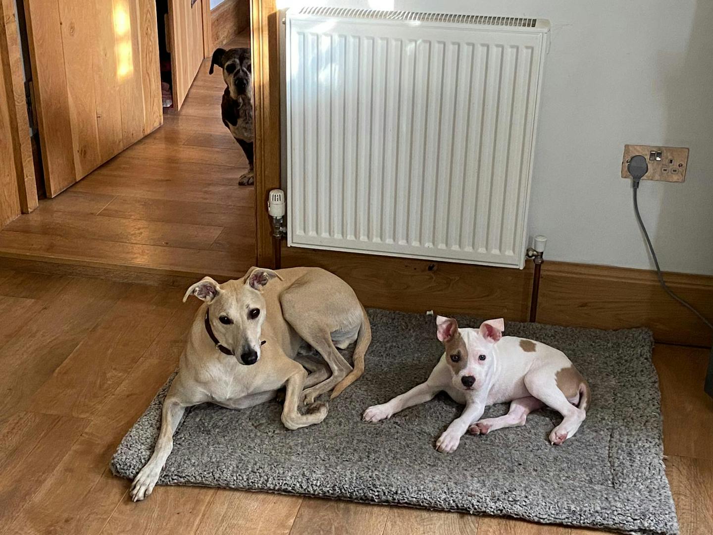 She is great in the car, just curls up in her travel crate for a nap. She has been left for an hour or so on her own loose in the house and when I've returned there hasn't been any damage or accidents, she is normally just curled up asleep. Similarly, she is very good at self-settling in her bed or on the sofa whilst I'm working. She still has the odd toileting accident in the house, normally if I've been distracted and missed the signs she wants to go out, but she is getting much better and only tends to wake me up maximum once overnight needing to go out. Otherwise she likes a lay in and it's normally me waking her up in the morning rather than the other way round!