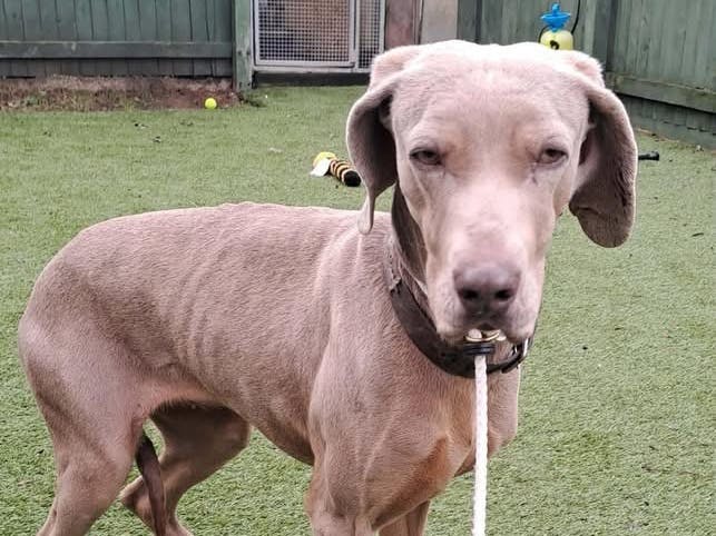 My name is Wilma, and I am an 8-year-old Weimaraner who came to SEDR as an unclaimed stray from council kennels, and it is sadly believed that I was been dumped.
