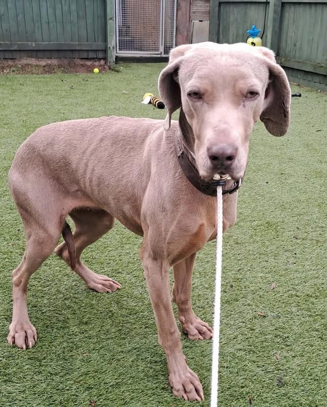 My name is Wilma, and I am an 8-year-old Weimaraner who came to SEDR as an unclaimed stray from council kennels, and it is sadly believed that I was been dumped.